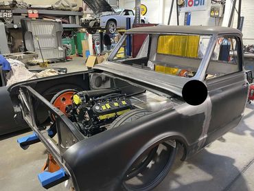 When we decide to Build Our 1967 Chevrolet C10 truck Sicario 67 first thing that came into mind as far as chassis is Roadster Shop. Roadster shop is by far the best in the business! All Roadster Shop SPEC Series chassis are designed to deliver an aggressive 4.5 to 5 inch ride height—no need to cut, C-notch, or step your original frame and worry about keeping everything square. with this setup will be able to lay frame using up to a 29 inch-tall tire.